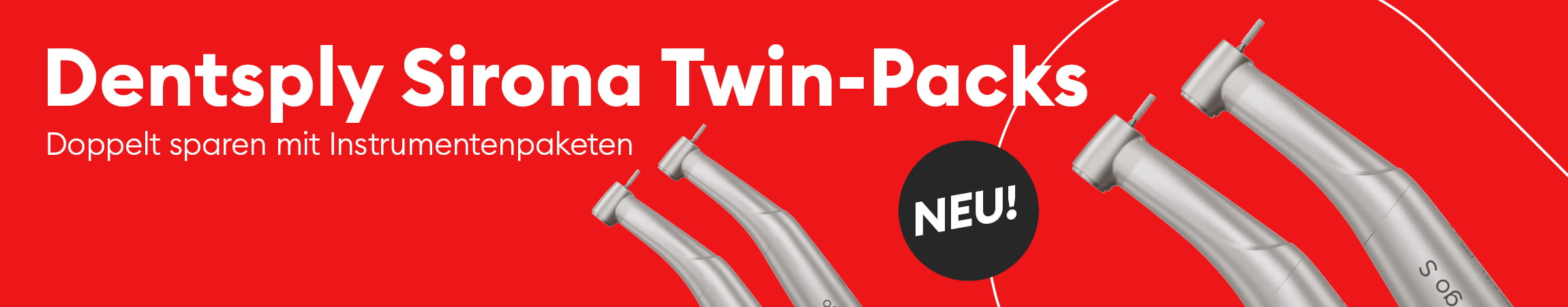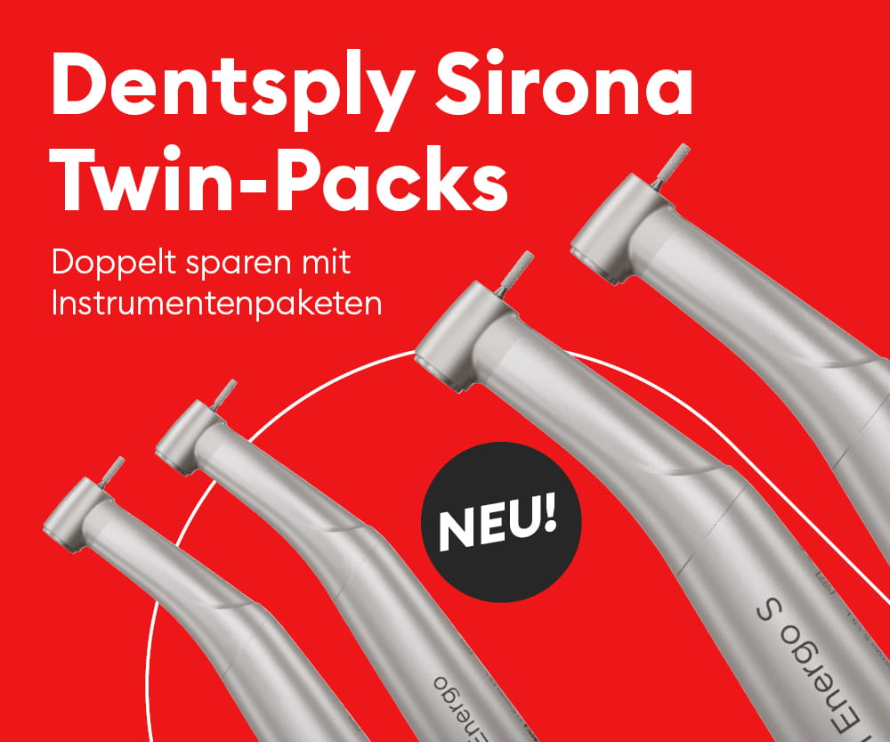 Sie sind auf der Suche nach optimale Arbeitsergebnisse in Ihrer Zahnarztpraxis? Dann brauchen Sie Instrumente, die zuverlässig performen und im Alltag spürbar entlasten. Die Lösung ist unsere Twin-Pack Aktion von Dentsply Sirona: Alle Twin-Packs enthalten zwei identische Instrumente. Innerhalb der Aktion sind die Twin-Packs frei auswählbar aus T1/T2 Energo Winkelstücken und T1/T2 Turbinen (jeweils als Doppelpack mit zwei gleichen Instrumenten).