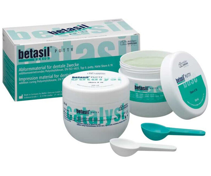 Müller-Omicron betasil VARIO aus der Kategorie A-Silikon ist ein ausgezeichnetes Produkt für die zahnärztliche Praxis. betasil VARIO PUTTY/PUTTY SOFT: